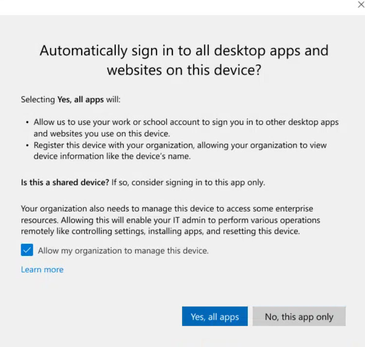 Good news for Intune admins: Microsoft is finally bringing native control over the famous Allow my organization to manage my device prompt that appears when a user adds a work or school account on Windows.